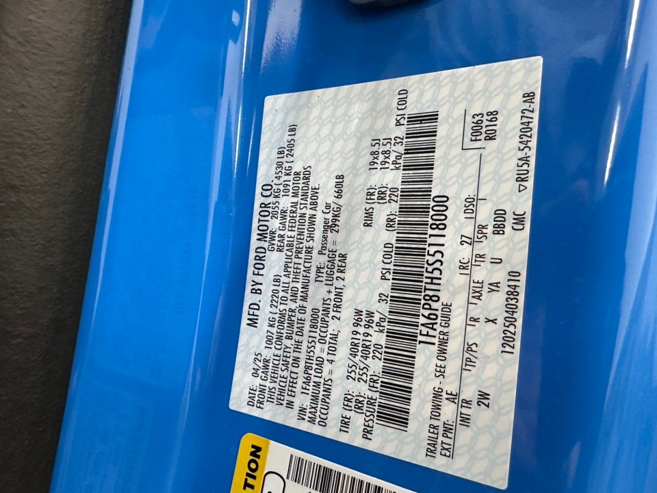 2025 Ford Mustang This vehicle has been equipped with our OPTIONAL dealer-installed Total Confidence Plus Package ($2,995), which includes: Loaner for Life, Digital Fraud Protection, Anti-Theft Vin Marking, Collision Loyalty Credit, Stolen Vehicle Assistance, Paint and Fabric Protection, 1st Oil Change, A/C Refresh Service, Rain Repellent, 7-Day Exchange (used only),Headlight Protection, 2nd Key & Remote, Full Tank of Gas, Nitrogen Tire Service, Door Edge & Cup Guards, Roadside Assistance Plan, $500 Coupon, Additional 1 Month/1,000 Mile Warranty (non-CPO used vehicles), and a Customer Welcome Kit with Customer Mobile App . This package is optional, not required by law, and not included in the advertised price. It may be purchased separately at the time of sale.
