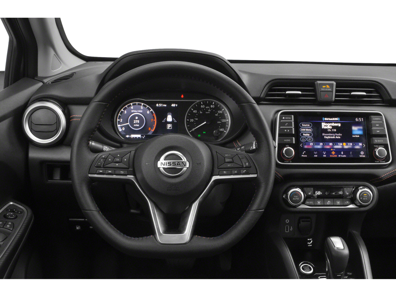 - Radio: AM/FM Audio System -inc: RDS, MP3, aux-in, NissanConnect featuring Apple CarPlay, Android Auto, SiriusXM satellite radio, 7" color touchscreen display, Bluetooth® hands-free phone system, streaming audio via Bluetooth®, interface for iPod and other compatible devices, hands-free text messaging assistant, Siri Eyes Free/Google Assistant, voice recognition, 6 speakers, 12-volt DC power outlet and 3 USB ports (2-charge only)